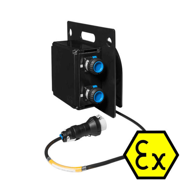 De Ex verdeelkast is voorzien van de volgende aansluitingen: 3 x CEAG 3-polig 230 V / 16 A.