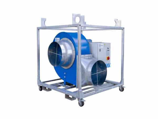 Dit maakt de machine breed inzetbaar en multifunctioneel. De ventilator is daardoor ook geschikt voor het aan- en afvoeren van verse lucht, om zo de benodigde luchtstroom te garanderen. Het selectiepunt van de radiaalventilator TFV-600 is 15.500 m³/h bij 2.100 Pa.